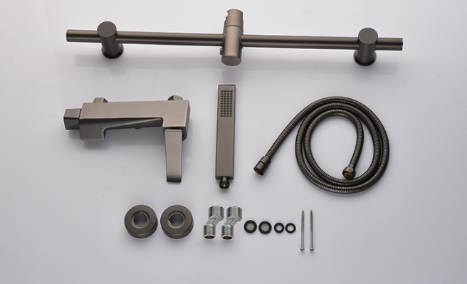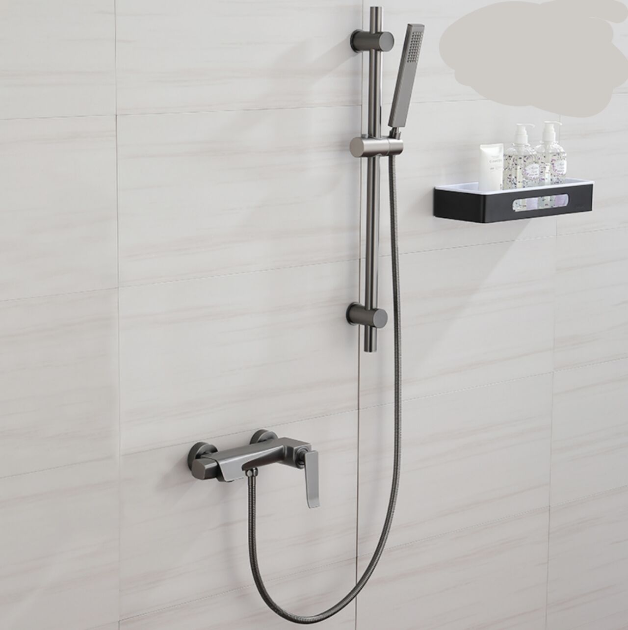 Gun gray copper bathtub faucet hot and cold shower simple type faucet mixing valve square shower shower set
