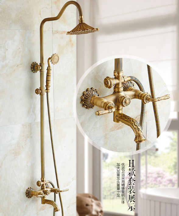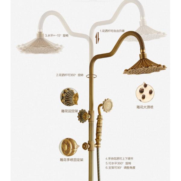 Retro Bronze Carved Wall Mounted Rain Shower Faucets Images |